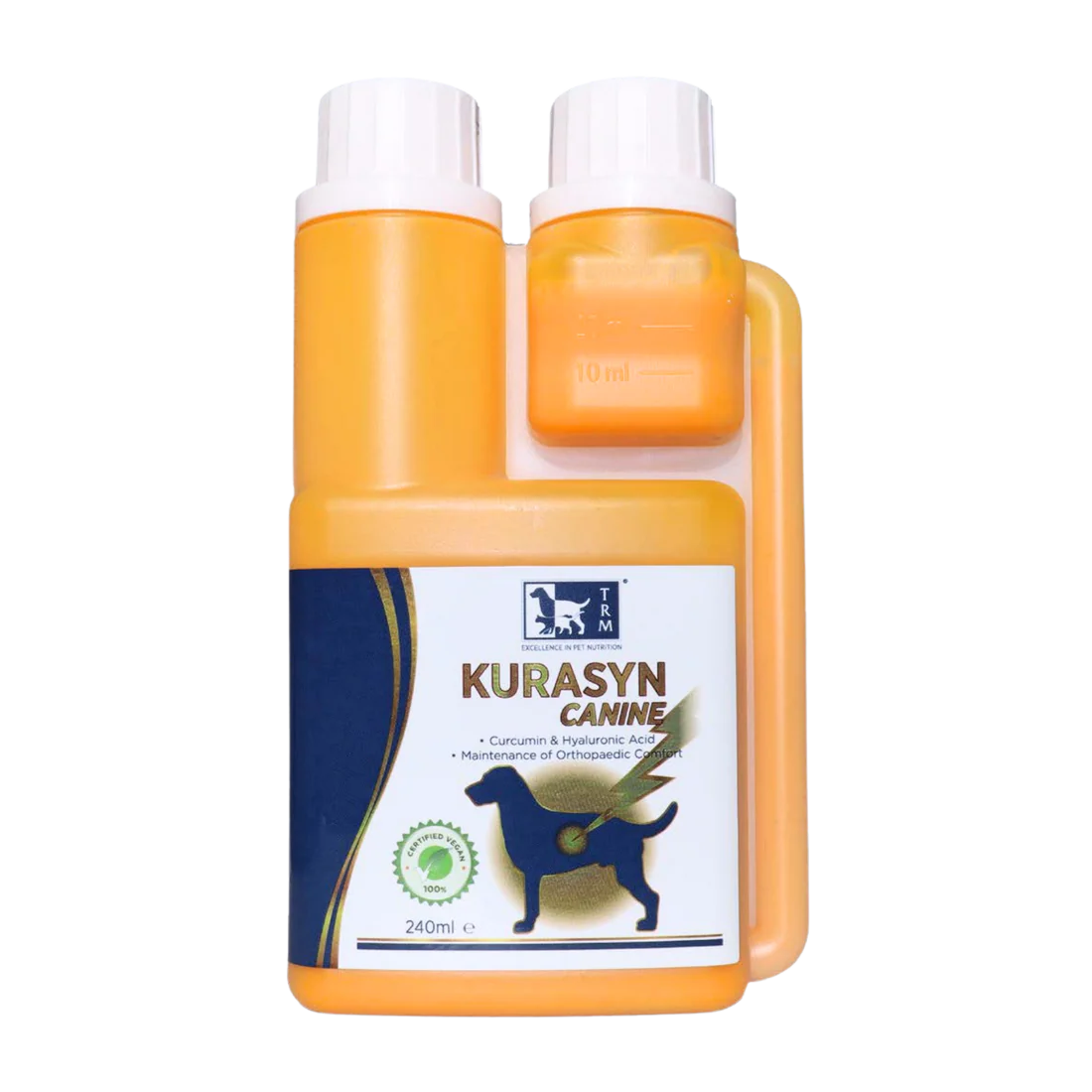 KURASYN CANINE is a complementary feed supplement for dogs containing highly bioavailable Curcumin combined with Hyaluronic Acid. The Turmeric utilised in the formula has been complexed with a naturally occurring oligosaccharide and has significantly better absorption compared with standard Turmeric.